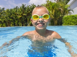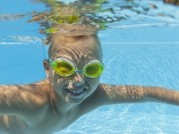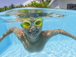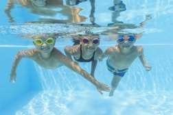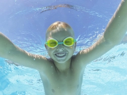 Polykarbonatlinser med UV-filter beskytter børns øjne mod solen og giver klart udsyn under vand.