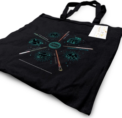 Stilfuld stofpose fra Harry Potter med motiv af tryllestave til hverdagsbrug. Den er let, holdbar og genanvendelig med miljøvenligt print fremstillet med den nyeste teknologi.