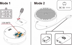 USB 5 V eller 3× AA (batterier medfølger ikke)