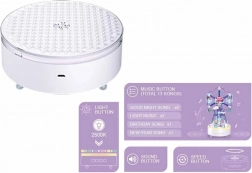 Drej karruselens sokkel i takt til en af de 13 melodier, og se scenen lyse op. Kombinationen af musik, lys og glidende rotation skaber en magisk stemning til både leg og udstilling.
