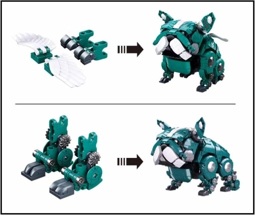 Byg en original mekanisk bulldog i grøn og nyd timevis af gennemtænkt underholdning. De robuste ABS-dele passer præcist, modellen har bevægelige segmenter til dynamiske positurer, og byggesættet stimulerer logisk tænkning, tålmodighed og finmotorik.