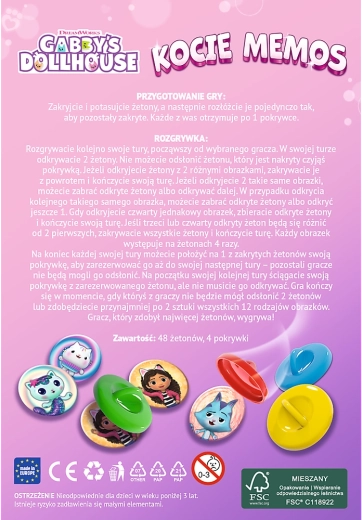 Det underholdende familiespil pexeso Kocie Memos fra TREFL udvikler hukommelse, koncentration og bringer masser af glæde til både børn og voksne. Den kompakte pakke er nem at tage med på farten – til picnic, ferie eller til bedsteforældre. Find par af jetoner med de populære figurer fra eventyret Gabbys Kattedyr-hus og saml så mange som muligt!