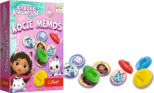 Pexeso Kocie Memos TREFL med motiver fra Gabbys Kattedyr-hus. Træner hukommelse, har hurtige regler og en kompakt rejsepakke – ideelt til børn og familier.