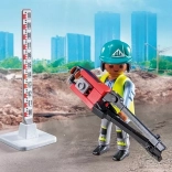 Inkluderer 2 bygningsarbejdere med hjelme, walkie-talkie, kost, skovl, måle-stativ og andre værktøjer til ubegrænsede scenarier og kreativ udvikling.