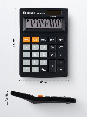 Den pålidelige kontorlommeregner ELEVEN SDC-022SR kombinerer en stor, letlæselig skærm med intuitiv betjening. Takket være solpanelet og backup-batteriet egner den sig til daglig brug, hvad enten det er ved bogføring, studier eller hurtige kontrolberegninger.