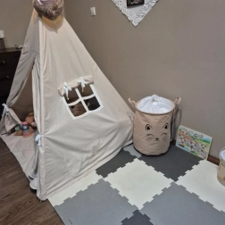Gør orden stilfuldt. Den store KRUZZEL-kurv med låg og snørelukning beskytter indholdet mod støv og nysgerrige blikke, mens den kraftige tekstil med indvendig vandsikker belægning modstår daglig brug. Takket være de universelle farver og det søde print passer den til både børneværelse, badeværelse og soveværelse.