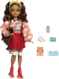 Dukken Barbie Dream Besties Teresa elsker at rulle og bringer en frisk, farverig stil inspireret af skyer. Takket være bevægelige led indtager hun let dynamiske positurer og inspirerer børn til at fortælle deres egne historier. Outfittet består af crop top med regnbue, blød cardigan med skyprint, rød plisseret nederdel og røde firehjulede rulleskøjter med knæbeskyttere.