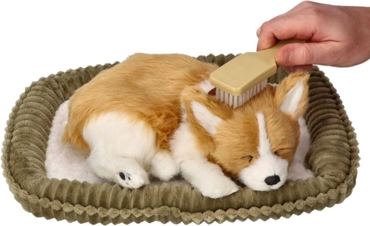 Det søde og realistiske åndende CORGI-hvalp vil glæde både børn og voksne. Den virker som en rigtig sovende hund, “trækker vejret” blidt og ligger på en blød seng. Ideel som beroligende ledsager, dekoration til børneværelset og gave til hundeelskere.