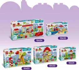 Børn hjælper Gurli og Far Gris med at tage på floden i en farverig båd og træner hånd-øje-koordination under både byggeri og leg.