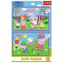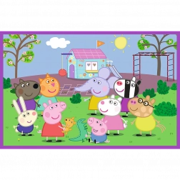 Disse puslespil med motivet Peppa på legepladsen bringer historier og figurer fra den kendte serie Peppa Pig. Hvert puslespil består af et billede i størrelsen 275x180 mm. Takket være den høje kvalitet og materialer med FSC-certifikat er samlingen sjov og miljøvenlig: