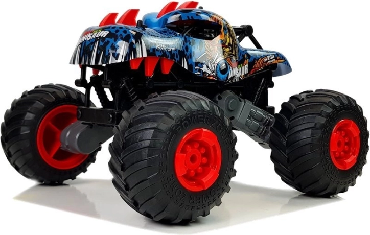 Den originale konstruktion med detaljer inspireret af dinosaurer, inklusive røde skæl og tematiske grafikker, får denne bil til at skille sig ud fra andre modeller.