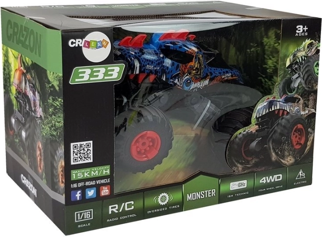 Den terrængående bil med enorme offroad-hjul og robust affjedring sikrer fremragende greb på forskellige underlag, hvilket gør det muligt at klare krævende ruter og forhindringer. Takket være drivkraften på de store, bredt placerede hjul er køretøjet stabilt selv i ujævnt terræn, hvilket gør det til et godt valg både indendørs og udendørs.
