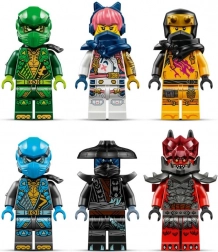• 6 minifigurer – Lloyd, Nya, Arin, Sora, Noktu og Tyr med våben