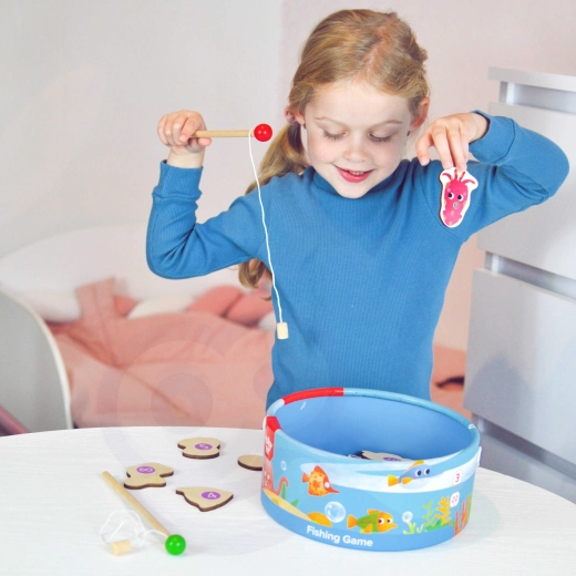 To træfiskestænger med magnet og farverige fisk giver sjov fangstleg og udvikler naturligt koordination og præcision i bevægelserne.