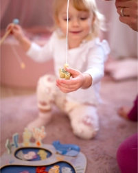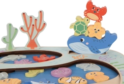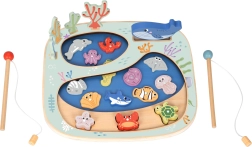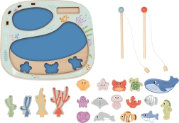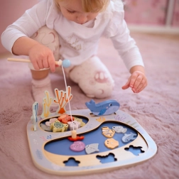 Fiskespillelegetøj Tooky Toy tilbyder ikke kun traditionelt fiskeri, men også forskellige kreative aktiviteter for børn. Tag på eventyr med at fange skjulte skabninger, som kan være skjult i en af de to klippebassiner på pladen. Legen udvikler børns færdigheder som finmotorik og hånd-øje-koordination. Med en massiv trækonstruktion med FSC-certificering og giftfri farver er det sikkert for børn fra tre år.