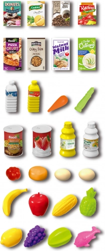 - Komplet sæt: 56 stykker dagligvarer til realistisk leg.