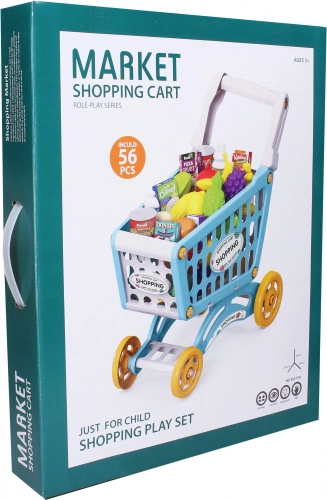 En børneindkøbsvogn med rigt tilbehør vil glæde alle små købmænd. Sættet indeholder 56 stykker dagligvarer og en billedvejledning for nem samling. Den stabile udførelse og målene 40 × 24,5 × 44 cm er ideelle til børneleg derhjemme og på farten.