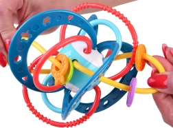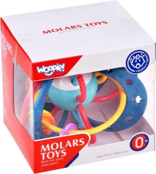 Dette lette og let-gribelige sensoriske legetøj fra WOOPIE er designet til sikker udforskning. De bløde, elastiske løkker ligger behageligt i de små hænder og fungerer samtidig som en skånsom bidering under tandfrembrud. En raslende kugle indeni giver lydstimulering og opmuntrer barnet til aktiv leg.