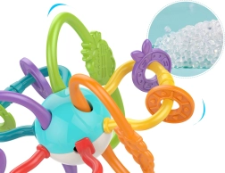Legetøjet kan lægges i køleskabet for at give lindring til barnets irriterede tandkød under tandfrembrud. Det er beregnet til børn fra fødslen og kombinerer funktionerne bidering og rangle. De mange forskellige teksturer, farver og former vækker barnets sanser.