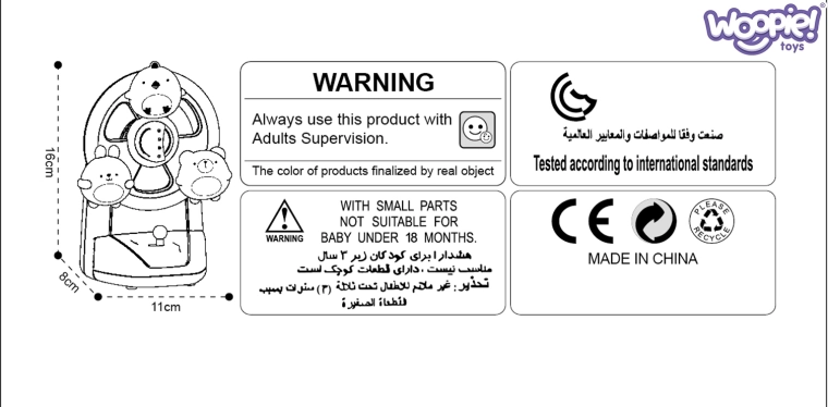 Der medfølger også et sjovt element med tal, som imiterer et telefonisk tastatur, samt en indbydende betjeningsknap/joystick til nem opstart af rotationen. De kompakte mål 16 × 11 cm passer perfekt både i børneværelset og på rejser.