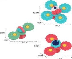 Sæt med 3 roterende spinner-legetøj fra mærket Woopie er et interaktivt og farverigt legetøj til dit barn. Hver af legetøjene er forskellig og har 2, 3 eller 4 arme. De kan fastgøres til glatte overflader, hvilket øger legemulighederne.