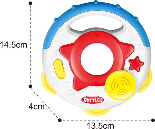 Takket være den ergonomiske form ligger tamburinen godt i selv små hænder. Leg med knapperne og at gribe legetøjet styrker finmotorikken og hånd‑øje‑koordinationen, lydeffekterne udvikler hørelse og rytme. De anvendte materialer er 100% ikke‑toksiske, så du kan være tryg ved den daglige leg.