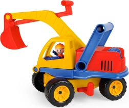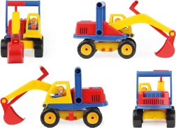 Denne robuste plastgravemaskine vil glæde enhver lille bygmester. Med den drejelige overdel og den letbetjente arm med skovl kan børn fordybe sig i realistisk byggelege. Den integrerede førerfigur giver legen mere fantasi og understøtter udviklingen af motorikken.