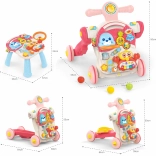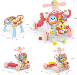 Denne legeting er en sand skattekiste af overraskelser, som barnet kan udforske selv. Kombinationen af flere funktioner i ét produkt – gåstativ, løbehjul, ride-on og pædagogisk bord – sikrer, at det forbliver spændende længe.