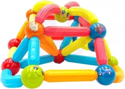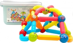 Dette farverige magnetiske byggesæt fra WOOPIE er ideelt til børn fra 3 år. Delene er tilstrækkeligt store, robuste og afrundede, så de ligger godt i små hænder. Metalkugler og magnetpinde i forskellige længder og former gør det muligt at skabe fantasifulde modeller – fra enkle figurer til mere avancerede 3D-konstruktioner.