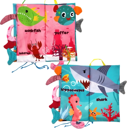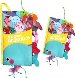 Denne bløde og holdbare bog “Ocean Animals” fanger interessen hos børn fra fødslen. Farverige havmotiver, udstående små finner og haler samt knitrende detaljer giver rig sensorisk stimulering. Når barnet griber og udforsker halerne, styrkes finmotorikken og koordinationsevnerne naturligt.