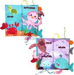 Opdag den legende stofbog WOOPIE med temaet havdyr, som kombinerer sansemæssig opfattelse, udvikling af synet og hånd-øje-koordination. Bløde sider med knitre-elementer, farverige illustrationer og udstående haler inviterer til udforskning, mens den praktiske fastgørelse med velcro gør det nemt at sætte bogen på barnevogn eller tremmeseng.