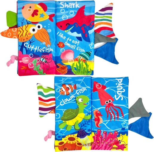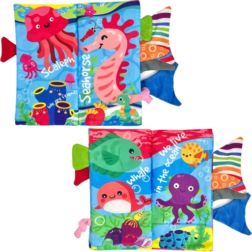 WOOPIE stofbogen med havtema er det ideelle første legetøj til spædbørn fra fødslen. Hver side byder på farverige illustrationer og forskellige teksturer, der inviterer til berøring. Udstående haler fra fisk og andre havdyr opmuntrer børn til at gribe og trække, hvilket naturligt styrker finmotorikken og koordinationen.