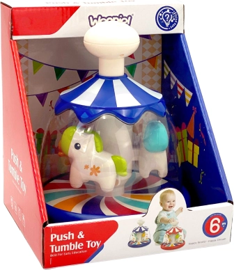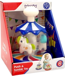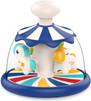 En glad og farverig karrusel med heste fra WOOPIE er den perfekte legetøj, som giver børn uforglemmelige øjeblikke af glæde og udvikling. Når man trykker på den hvide knap, begynder de søde dyr at snurre lystigt rundt og skaber effekten af en miniature af en ægte karrusel. Legetøjet kan bruges fra 6 måneder og er derfor en ideel gave til de mindste. WOOPIE er kendt for høj kvalitet og sikkerhed i deres produkter, så forældre kan være trygge ved, at karrusellen opfylder alle sikkerhedsstandarder.