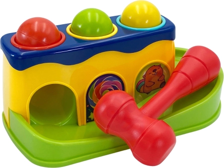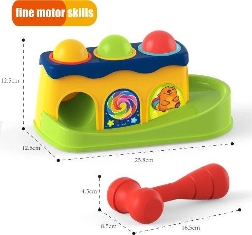 Dette legetøj kombinerer leg og læring med en farverig hammermekanisme, som hjælper børn med at udvikle motoriske færdigheder.
