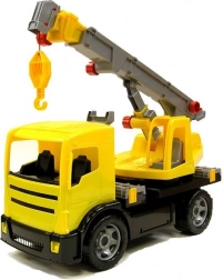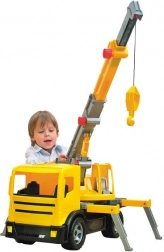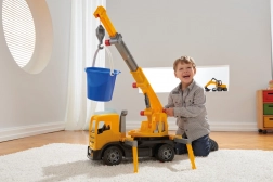 Mekaniske hjul til udtræk og løft af bommen samt et spil med line giver autentisk byggepladssjov og udvikler motorikken.