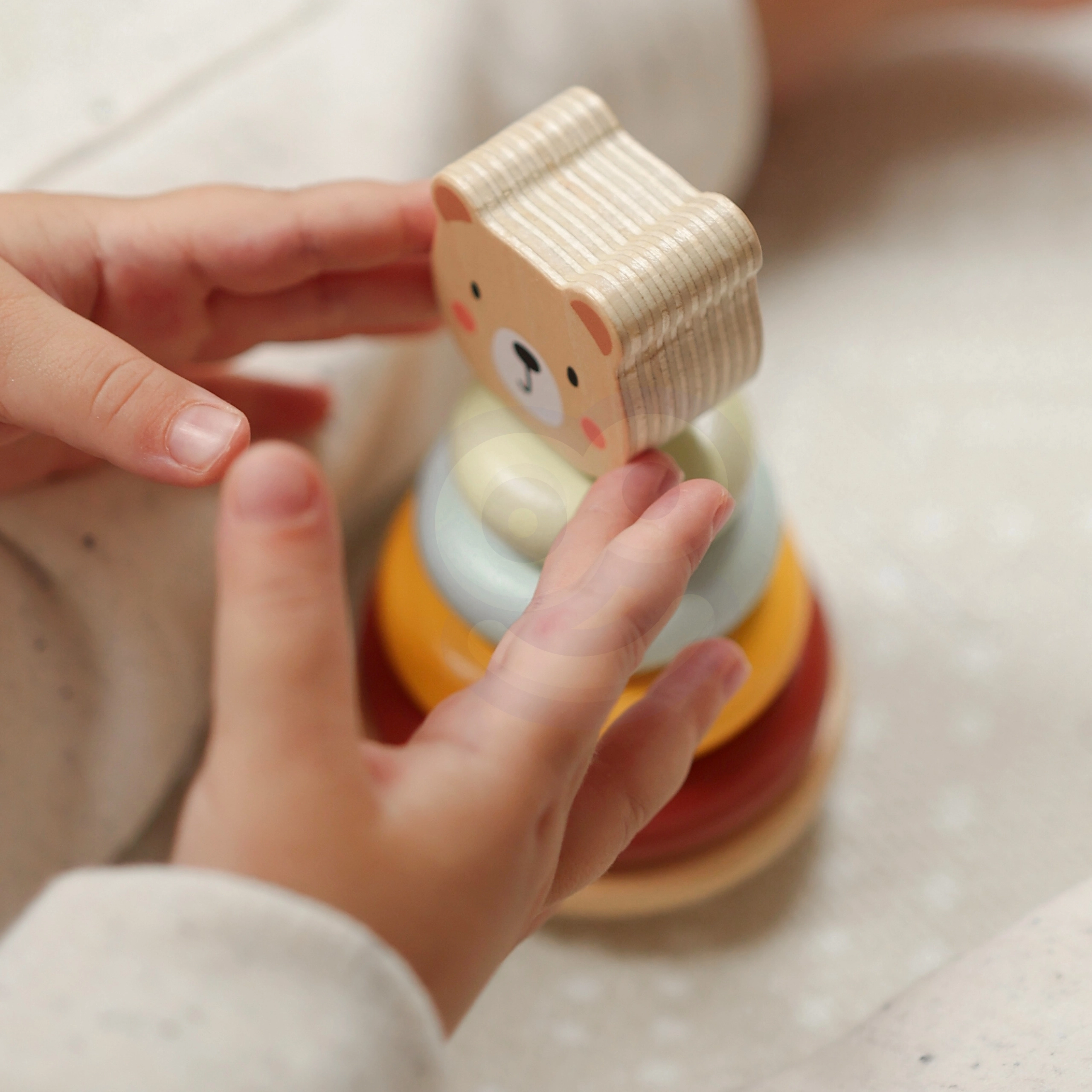 De farverige ringe er lette at sætte på og støtter øje–hånd-koordination, forståelse af størrelser og tålmodighed. Den søde bjørn motiverer til flere forsøg.