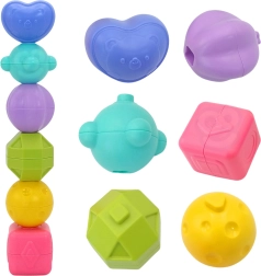 Indsætningsformer med skjulte rasleklokker motiverer til gentagen afprøvning. De støtter genkendelse af former og farver og styrker hånd–øje-koordination.