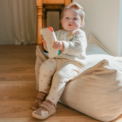 Den interaktive WOOPIE-controller er designet til nysgerrige små hænder fra 18 måneder. De farvede knapper drejer, klikker og spiller melodier, det lysende “sol”-element fanger opmærksomheden, og den bevægelige raket inviterer til kreativ leg. Kombinationen af lys, lyd og berøringsindtryk udvikler både sanseintegration og finmotorik.