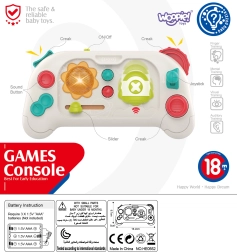 I midten af controlleren finder du knapper med pop-it-effekt, som giver behagelig taktil respons. Andre betjeningselementer drejer eller klikker, den glidende klokke kan nemt skubbes til venstre og højre, og musikknapperne aktiverer melodier og lyde. Controlleren er batteridrevet og klar til leg hvor som helst.