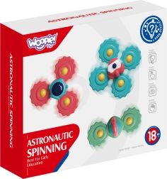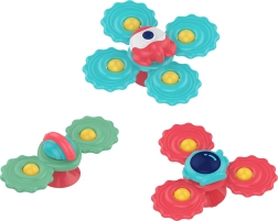 Det interaktive sæt med tre WOOPIE-spinnere til de mindste giver både underholdning og færdighedsudvikling. Hver spinner har et forskelligt antal arme (2, 3 eller 4), kan fastgøres til glatte overflader med en sugekop og er lavet af sikre materialer, der også egner sig som bidering. Takket være relieffer og knopper stimulerer de sanserne, understøtter finmotorik og koncentration hos børn fra 18 måneder.