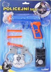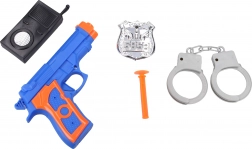 Pakken indeholder en pistol med sugekopspile til sikker skydning, et badge for et ægte politilook, håndjern til at “anholde” tyve og en walkie-talkie til at koordinere indsatser. Sættet er velegnet til børn fra 3 år og understøtter fantasiudvikling og rolleleg.