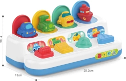 Denne robuste og omhyggeligt udførte interaktive pop‑up-legeplade giver børn fra 18 måneder endeløs leg og læring. De farverige køretøjer dukker op, når de aktiveres af forskellige betjeningsdele, hvilket straks belønner barnet og opmuntrer til gentagelse.