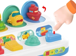 Oplev leg og læring i ét: det farverige interaktive legetøj med pop-up-køretøjer fra WOOPIE udvikler finmotorik, sansning og forståelse for årsag–virkning. Barnet trykker på et knap, drejer et hjul eller skifter en kontakt, og køretøjet springer op – en glæde, der motiverer til mere udforskning.
