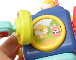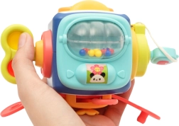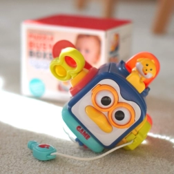 Kuben byder på forskellige teksturer, mønstre og farverige elementer, der giver stimulerende sanseoplevelser og hjælper med at udvikle barnets syn, hørelse og motorik. Interaktive elementer som pop-op hunden eller klokker giver lydlig stimulering. Legetøjet støtter barnets udvikling på en sjov og helhedsorienteret måde, hvilket gør det til et fremragende valg.