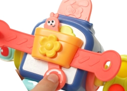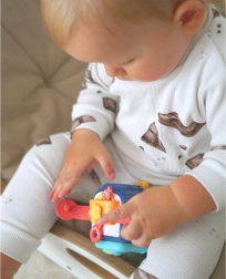 - Understøtter udvikling af motoriske færdigheder gennem at gribe, trække, dreje og trykke på forskellige dele