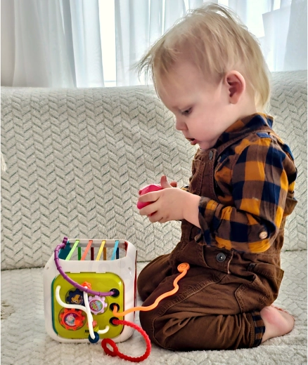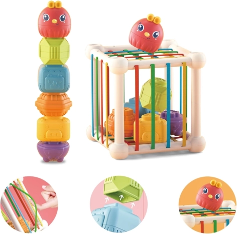 At sætte dele i og tage dem ud træner finmotorik, koordination og koncentration. Ideel støtte til tidlig udvikling og selvstændig leg.