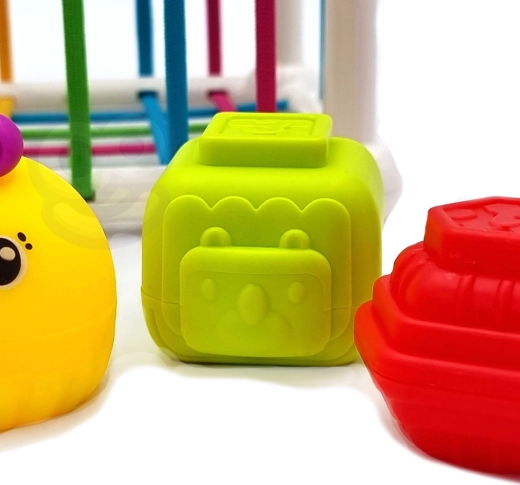 Den sensoriske terning og sorter WOOPIE BABY er et smart, lærerigt legetøj fra fødslen. Elastiske farvede bånd giver behagelig modstand, så børn sikkert kan sætte delene i og tage dem ud, mens de udvikler motorik, logisk tænkning og sanser. Velegnet til både selvstændig leg og fælles opdagelse med forældre.