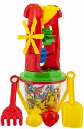 Dette farverige sandsæt er ideelt til ferie, udflugter og daglig sjov på legepladsen. Børn kan hælde sand i møllen og se de roterende skovle, bygge slotte og skabe former med formene. Den robuste konstruktion af kvalitetsplast sikrer lang levetid og sikker leg.