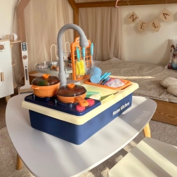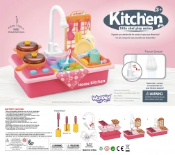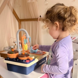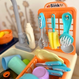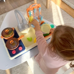 Glæd dine børn med dette fantastiske køkkensæt, der lader dem opleve køkkeneventyr. Dette legetøj tiltrækker især ved sin realistiske simulering af køkkenaktiviteter, understøttet af bevægelige dele og en funktionsdygtig hane. Bare hæld vand i beholderen og se, hvordan dit barn glædeligt leger.