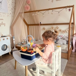 Legemads køkken med vask 2-i-1 fra mærket WOOPIE giver børn mulighed for at lave mad og vaske op som forældre. Realistiske funktioner og spændende elementer som roterende vandhaner og en funktionsdygtig hane med rigtigt vand sikrer timer af sjov og læring.